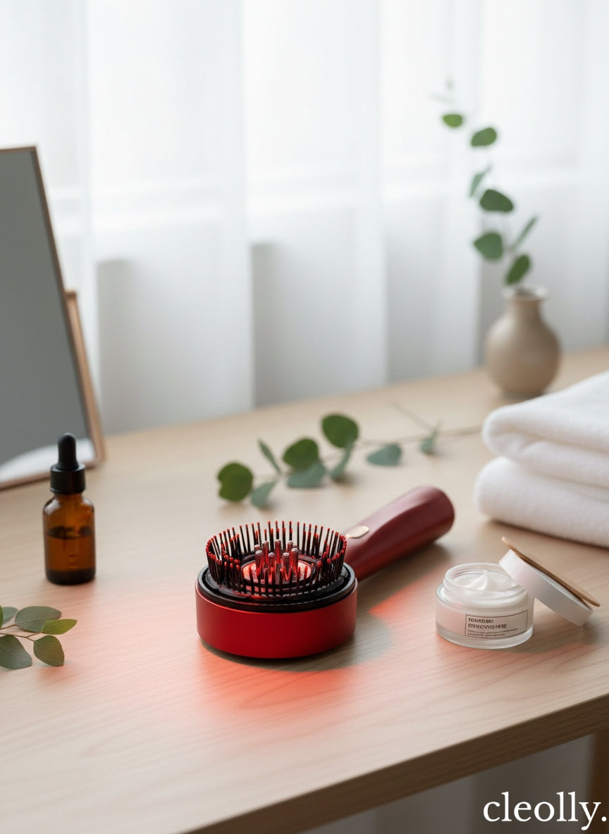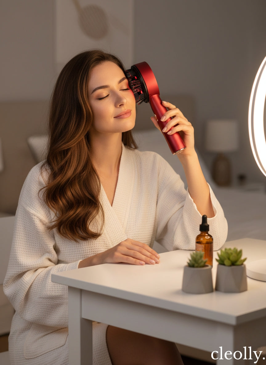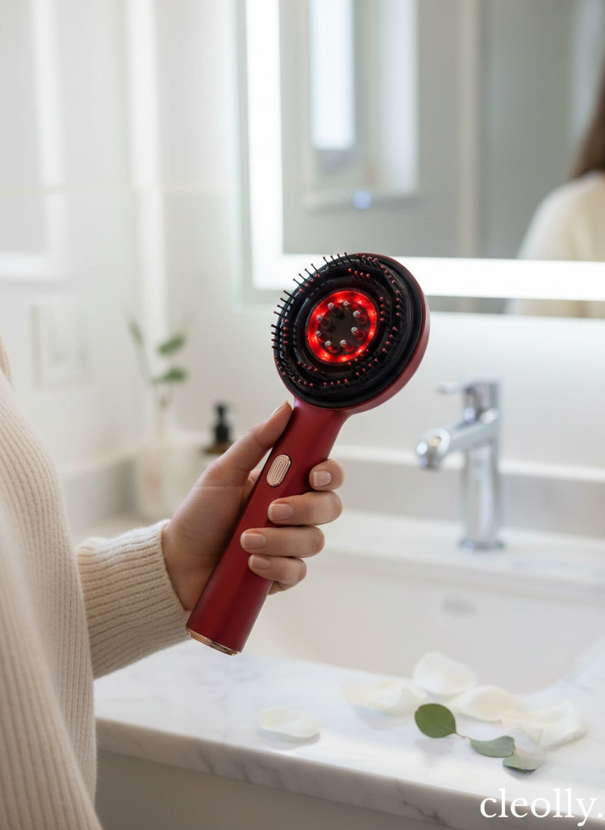 Czerwone światło LED wspiera mikrokrążenie i dotlenienie skóry głowy, pomagając stworzyć lepsze warunki do regeneracji i wzrostu włosów. Dodatkowo może wspomagać wchłanianie składników aktywnych z kosmetyków pielęgnacyjnych.