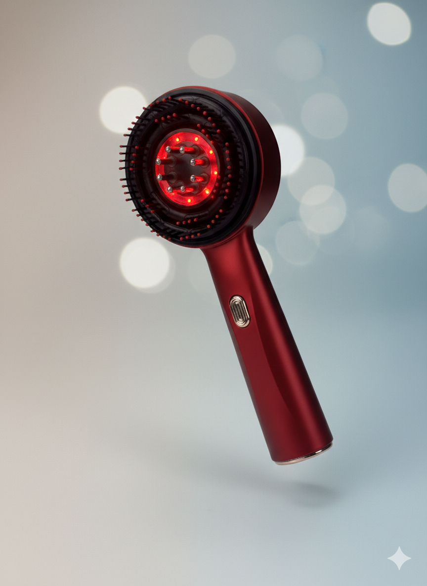 Wibracje pobudzają mikrokrążenie, rozluźniają skórę głowy i wspierają zdrowy wzrost włosów.